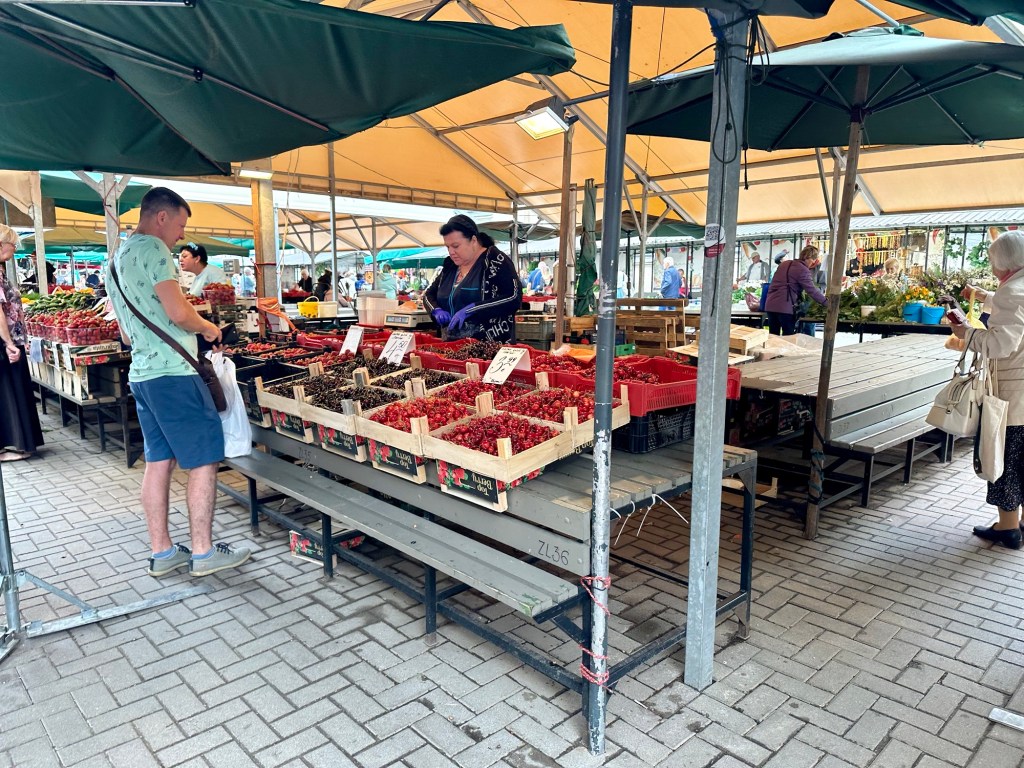 We quickly exited that hanger and walked through the open air markets that were full of lots of fruit and flowers. Vendors were selling small wreath type things that were cute. It took me a little while to figure out that these were for the Ligo celebration today. In retrospect I wish i had gotten one but I didn’t think about it until it was so late.