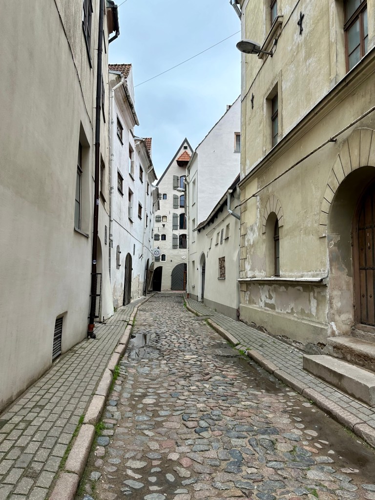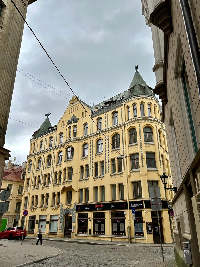 This is the narrowest street in Riga. Definitely not big enough for the van. This is the Cat House named because of the two cat sculptures on each of the turrets that you can’t really see because I have to take pics while walking so as not to completely irritate my family even though they are still irritated by me. Seriously? Could they be any more alike?