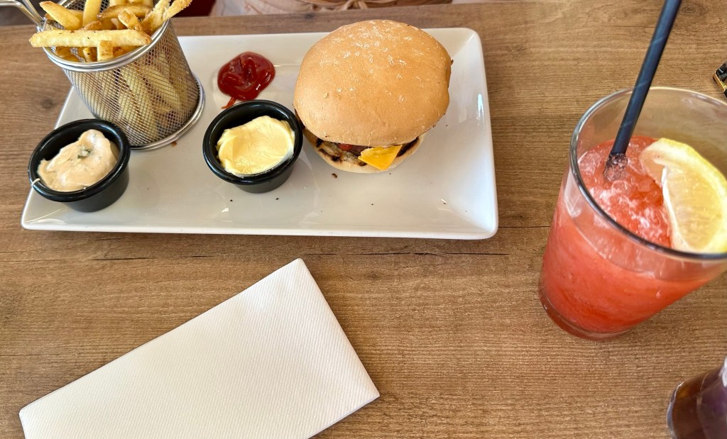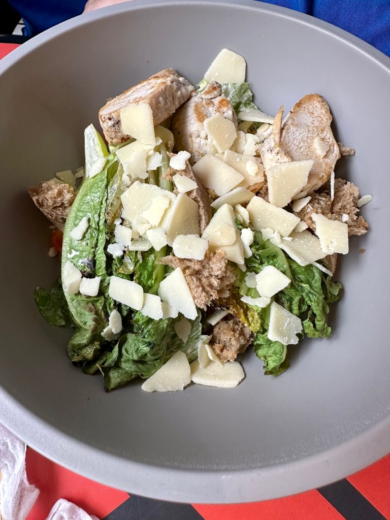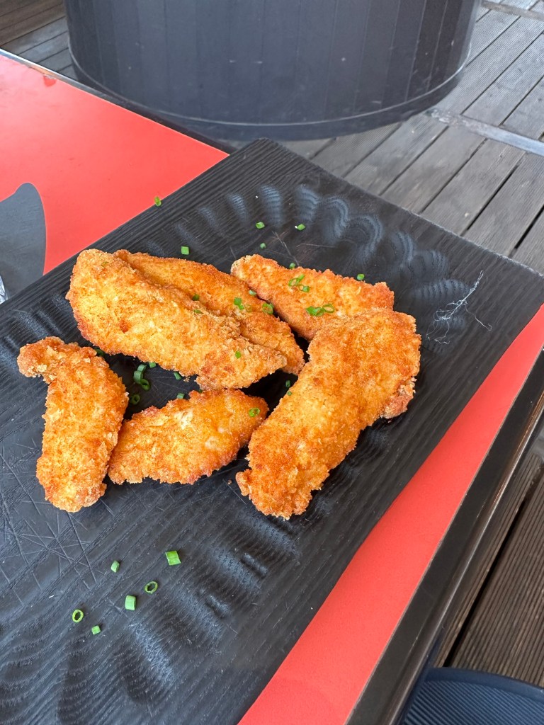 I wasn’t expecting moose meat, venison or duck leg confit so onion rings and chicken nuggets for the win. Jake went more upscale with salmon and almost everyone else did salads. I was the only one with the child like menu.