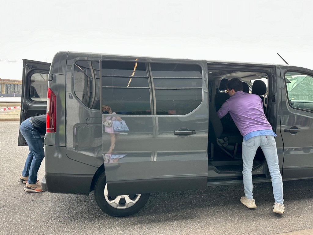 If I’d been keeping better score I’d say the final tally was Greg: 2 Renault: 1. The van got him real good this morning as a back panel thing that covers up the luggage area closed and hit the bridge of his nose while we were loading up. He immediately started gushing blood and asked for something absorbent.