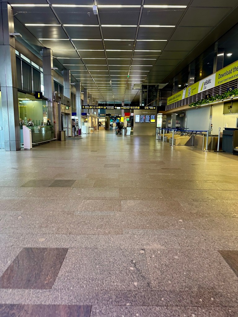 Not wanting a repeat of Luton and not being able to find “car hire” I had searched where to return the rental car in Riga. Most things said to follow the signs and other things said P4. It’s all fine and good until the airport is under construction and there are literally no signs. Since Greg had figured out how to easily loop around when we picked up Jake he decided to let us out and he and Brooks would go return the car. He gave Logan his computer bag to lighten his load.