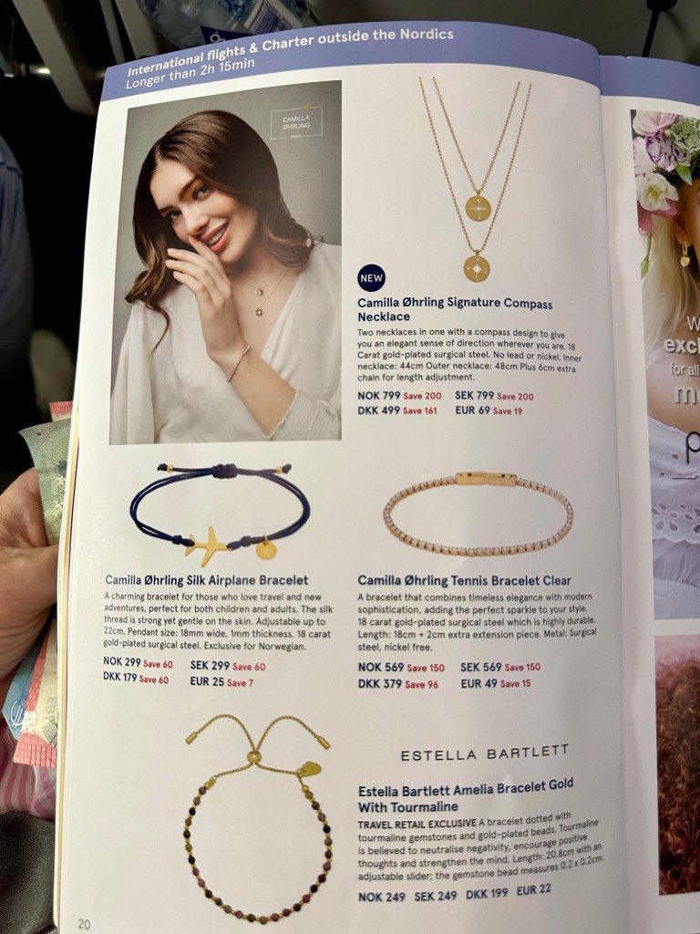 I was excited for another opportunity to shop in the air! This time I was all ready to make a purchase and spend these Euros that I can’t use in Norway. But I got robbed because our flight was too short.