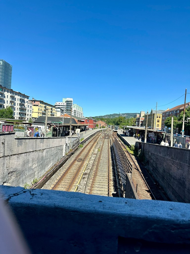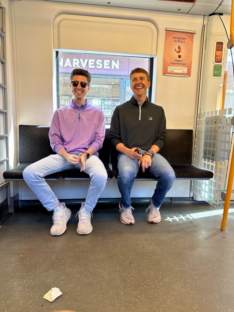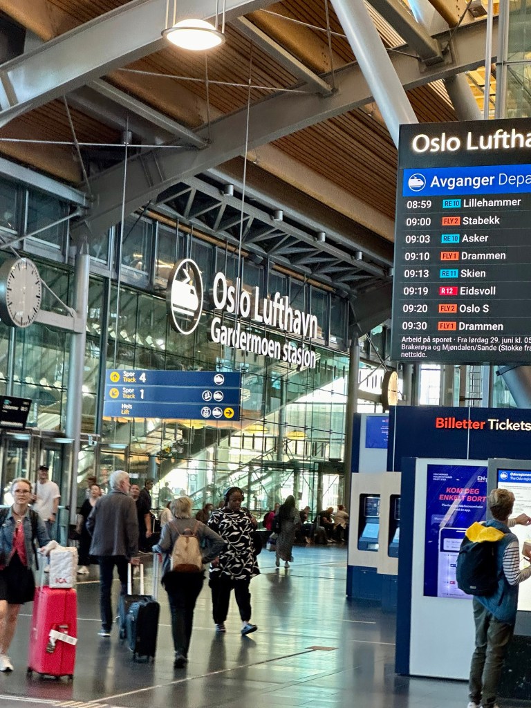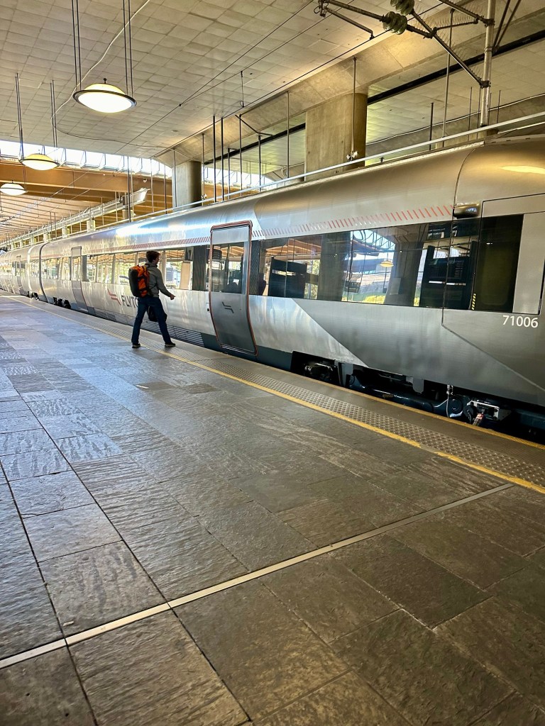 Our first stop is the Flytoget which is the train that takes you from the airport to central station. It’s Brooks’ favorite train ever solely based on location. It is a 20 min or so ride.