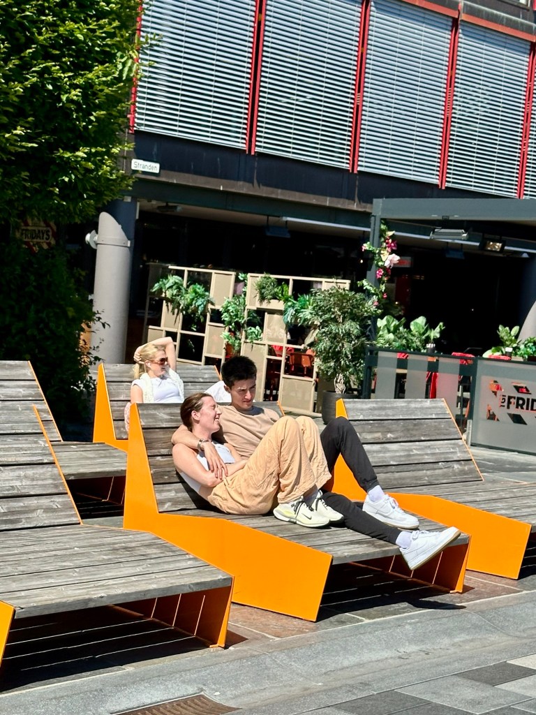 We are really hoping a restaurant speaks to us as we walk past. Unfortunately most all of the tables available are in the direct sun which doesn’t seem appealing. It’s close to 75 today and we have no sunscreen currently. The one restaurant with lots of tables open in the shade is TGIF. I swear the only time we eat at Friday’s is when we are traveling abroad. The last time I’m pretty sure we were in Edinburgh and couldn’t find a restaurant that allowed kids.