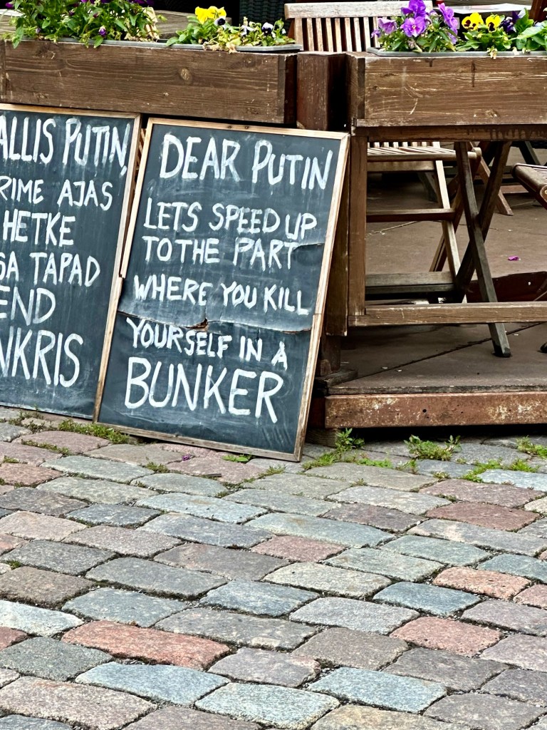 The gelato store wasn’t open 😦The white tower is at a Church. The boys went to the top yesterday. Anyone wanna hit the Texas Cantina?This is the Russian Embassy with lots of anti-war propaganda. The boys saw lots of protestors here yesterday. Overall there are many Ukrainian flags flying as well as anti Putin signs. There were lots of outdoor cafes here that were beautiful. Wish we had more time. This outdoor cafe had a lime cake. Man I’d kill for some lime cake!Russian Church that was beautiful inside. No cameras allowed however. ParliamentView of the defensive city wall