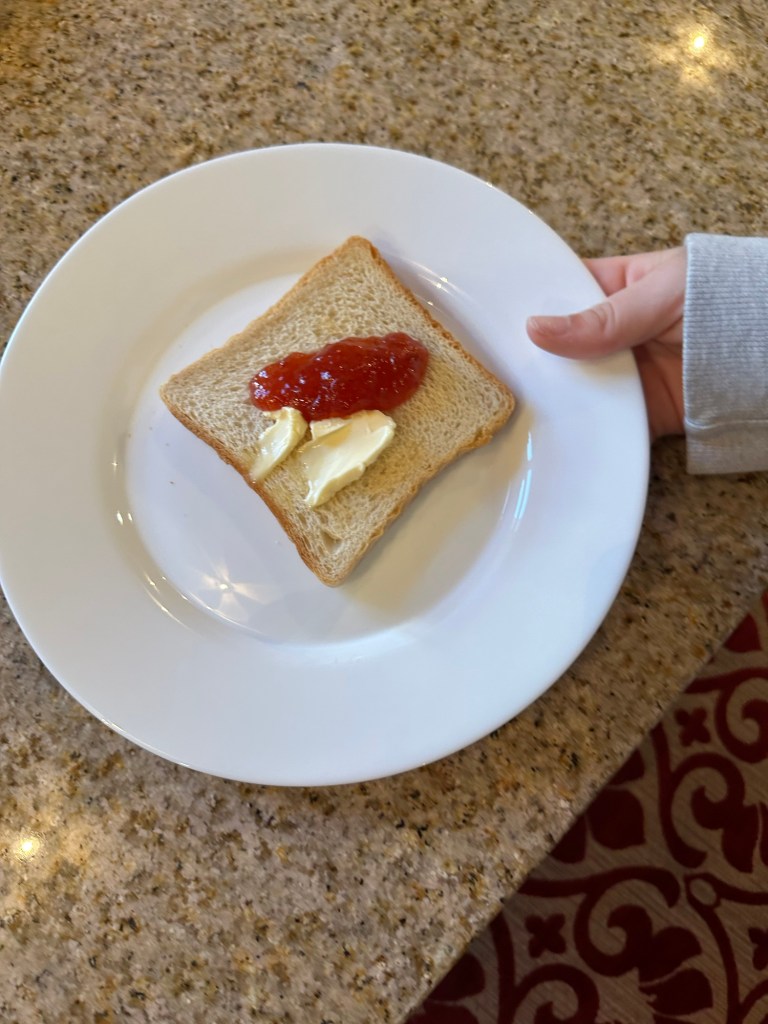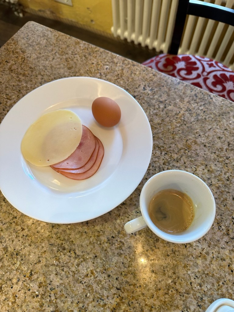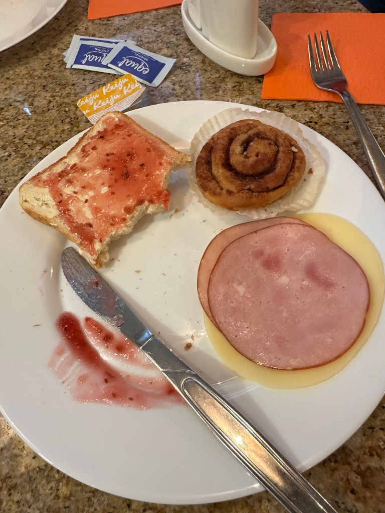 Brooks had come to our room to not wake Maddie and Logan was out of the shower. Time to head toward breakfast to meet Maddie. It’s always interesting to see what’s served in other countries.