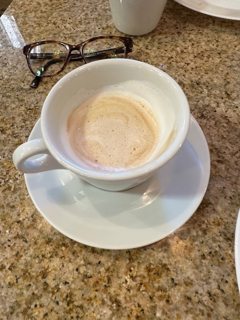 Brooks went for the chicken nuggets and a chocolate muffinMaddie had toastGreg ended up making a sandwich with espressoLogan had mostly meats with some cheese. I had all the thingsWith a proper hot latte