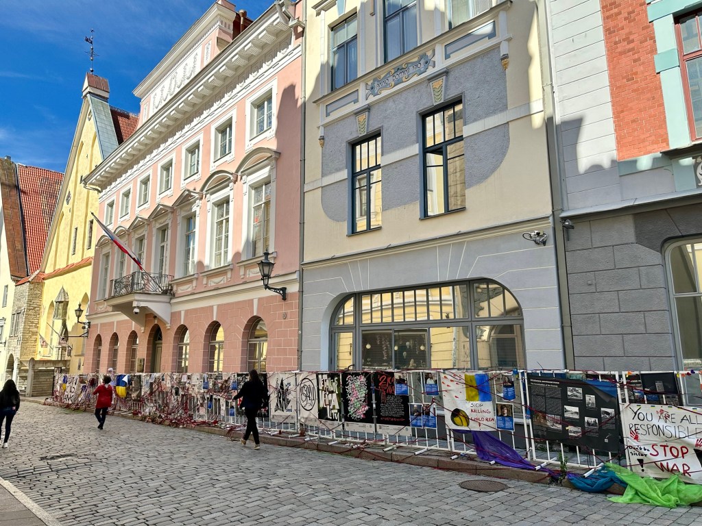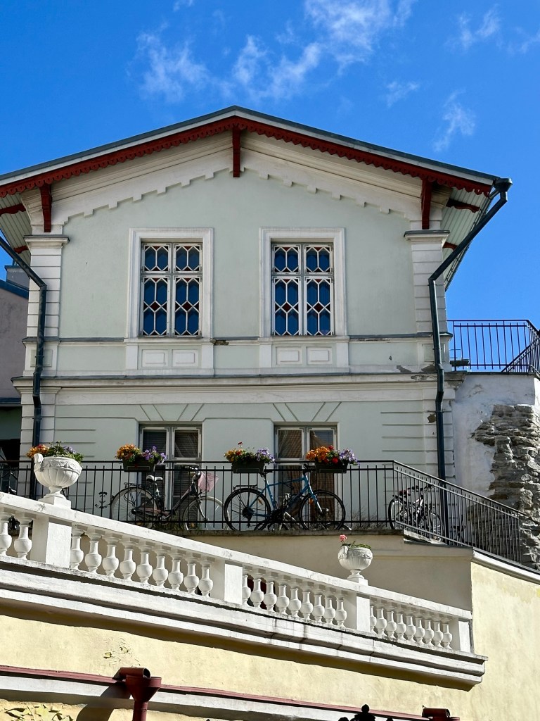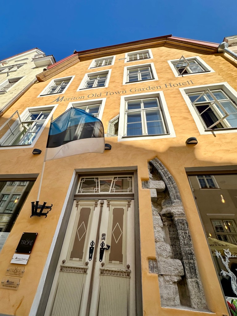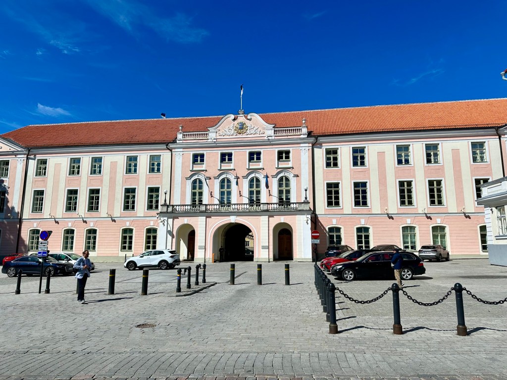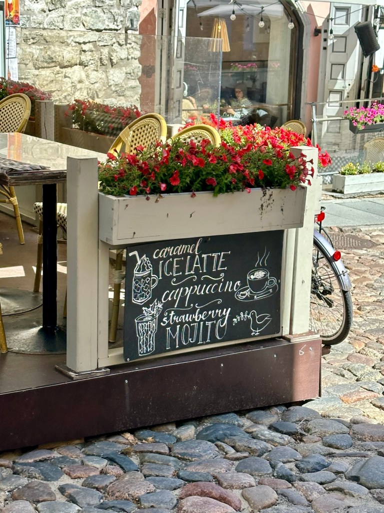 View of the Parliament building built into the wall Architecture with a lady hanging out her window Interesting mix of beverage offeringsSuper fancy downspouts We think this sign means don’t steal purses. Logan doesn’t speak Estonian