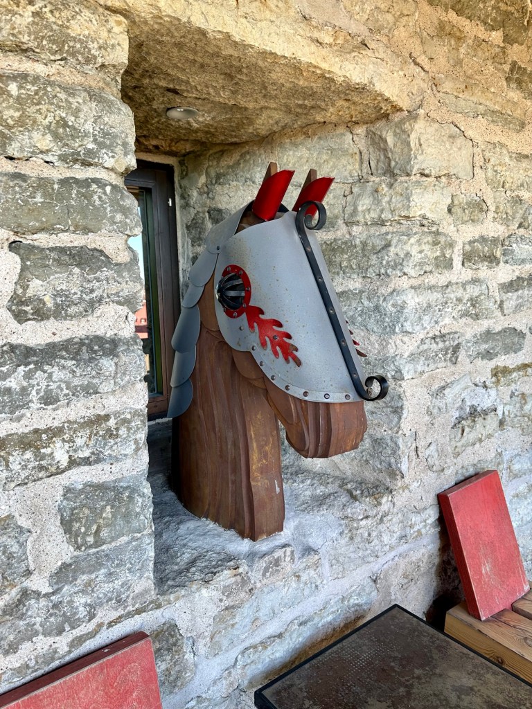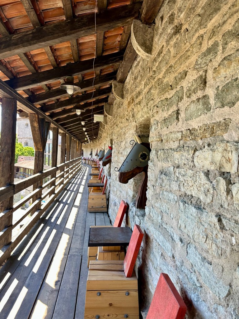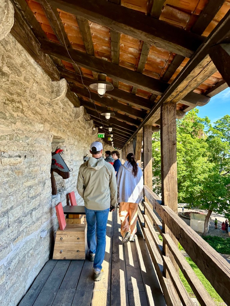 Random coffee shop in the wallGreg said this is where they would pour hot shit on invaders. Pretty sure he might have made this up but he does watch a lot of boring shit on tv so it’s possible. I’m into the wooden horse heads. Ceiling inside one of the towers