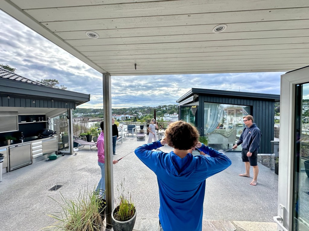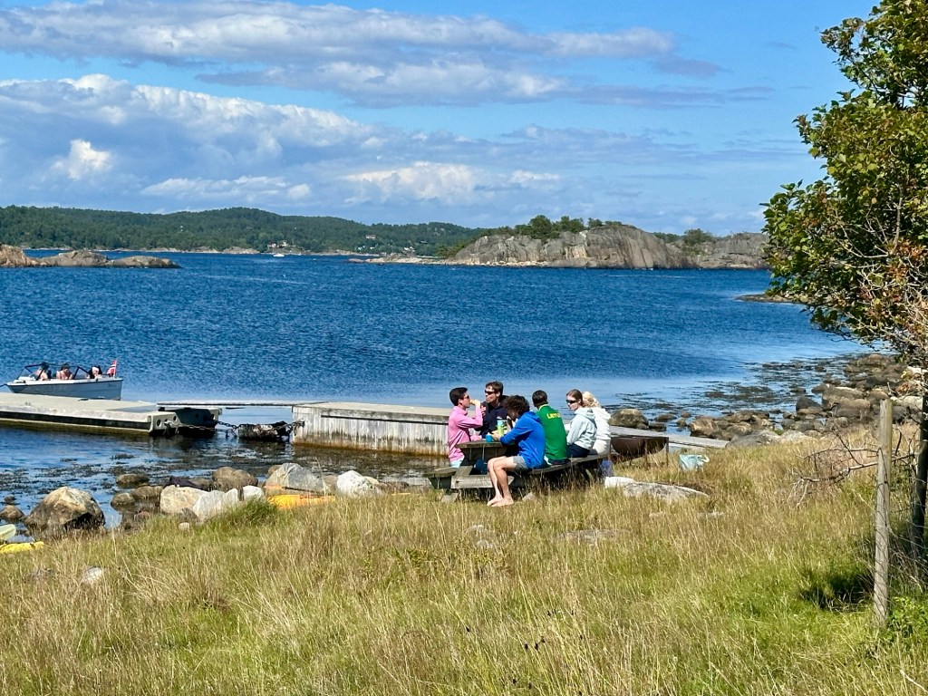 We had a light lunch, Norwegian style that Jason managed to set up without Karen’s help since she was still working. After eating and enjoying the beautiful views it was off for our final adventure in Fevik.