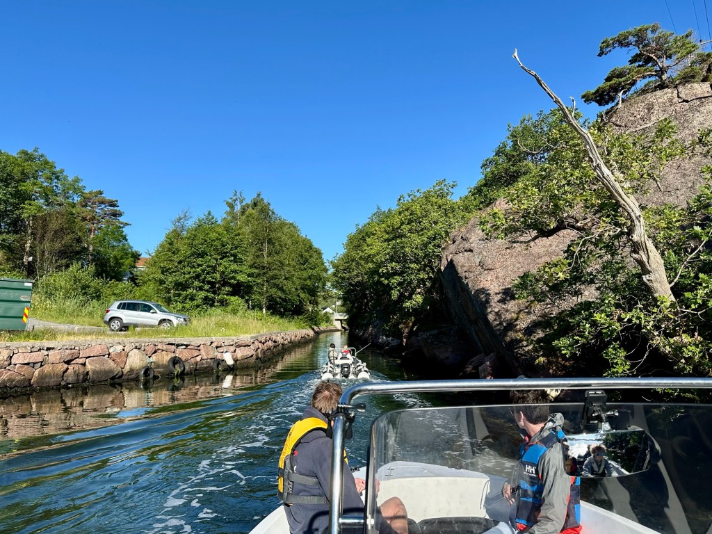 We are headed to Grimstad for breakfast which is about a 30 min boat ride and takes us through a small canal. This is a canal that Phillip ran the boat into the sides the first time he was here. He did perfect today.