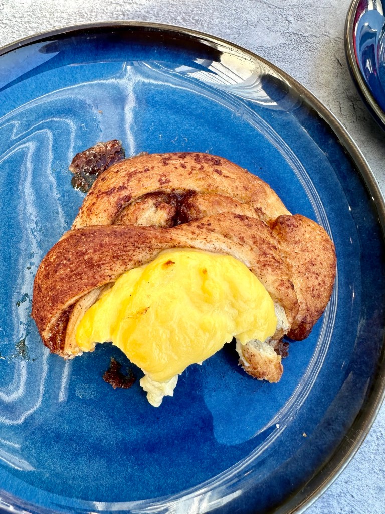 Forgot to take a pic of my cinnamon roll before I’d eaten half. Why not put some cream on top of the roll to make it unhealthier.