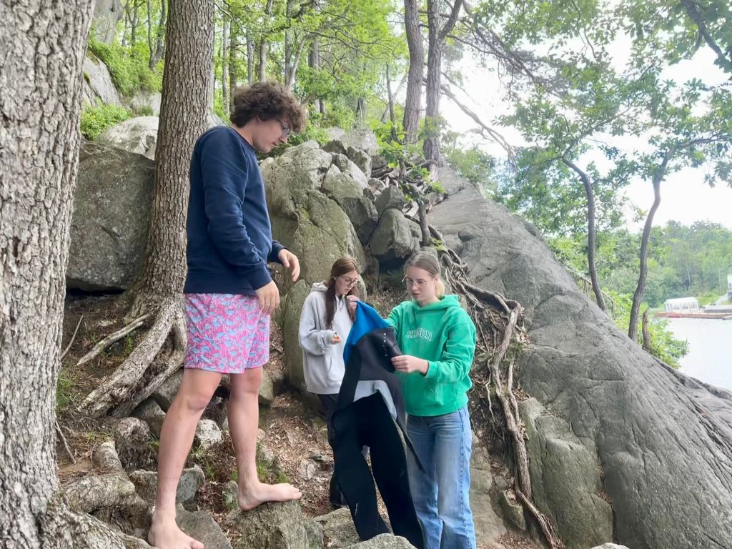 While Jason drove over to get his boat Logan and Greg decided to go for a kayak trip across the water to an island.