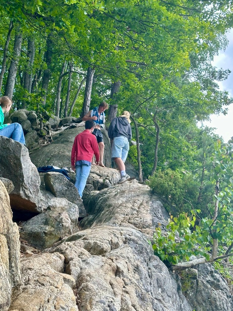 Jason had a call he needed to take for work (or he needed a much deserved break from everyone or he didn’t want wet kids in his car…or all of it) so he suggested that we take the kids to a spot that only Philip and Pia had been a time or two. He told Sarah where to go loosely. I entered the name in my maps and we were off in search of a jumping spot in a river. (Warmer water with no jellies.)