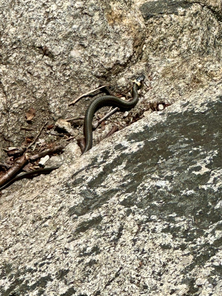 While the boys were jumping Pia noticed a snake that she was not a fan of. Everyone had to go check it out. It was so tiny I’m not sure how she even saw it!