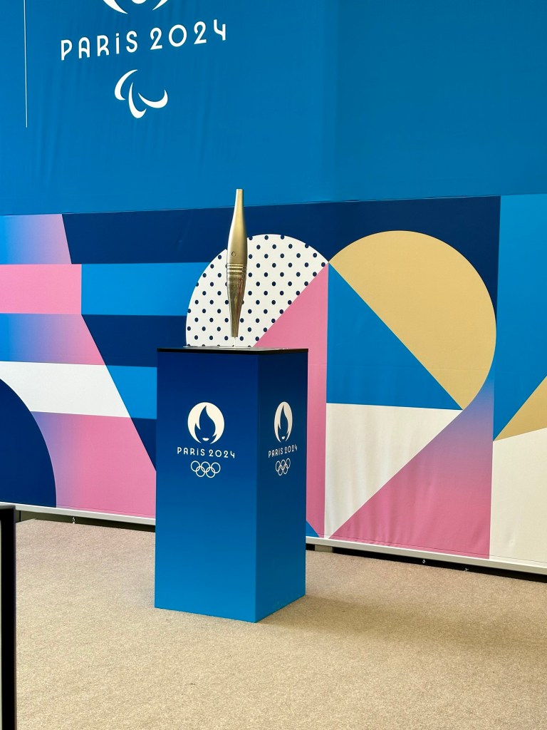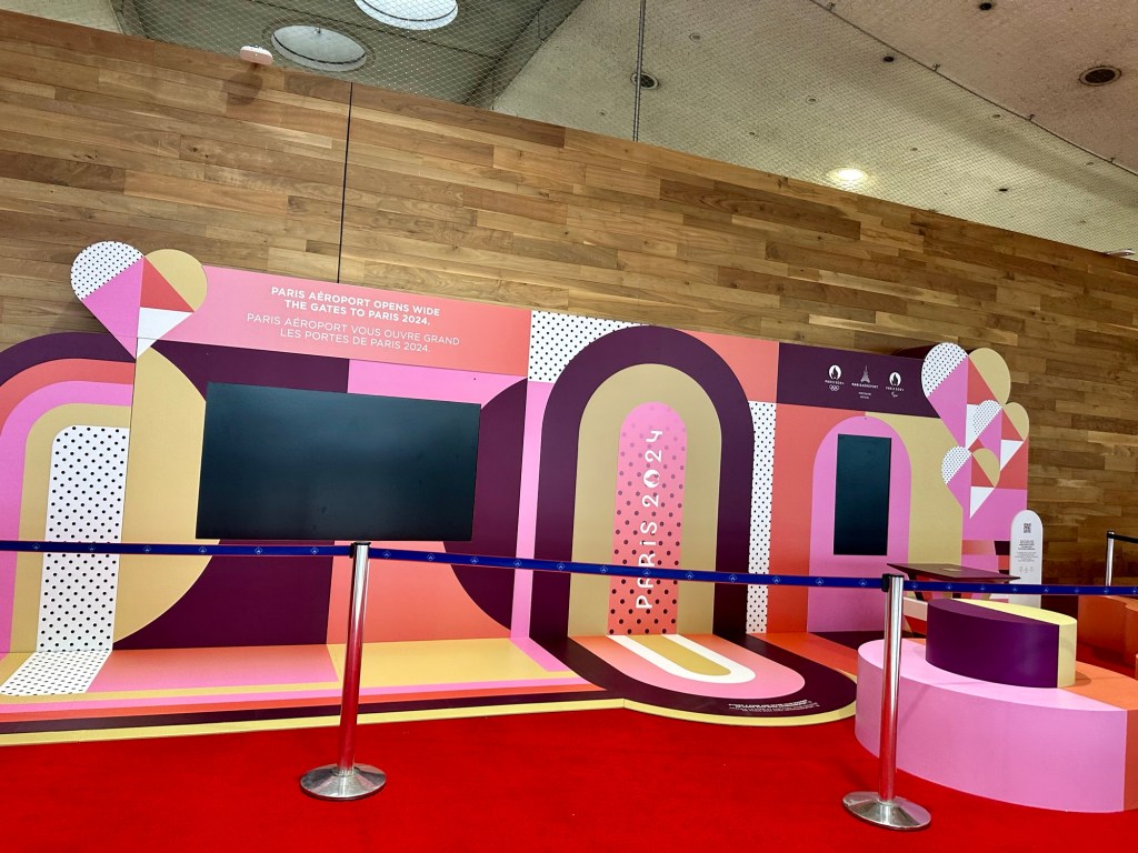 We landed in Paris a little after 9am. It didn’t take long for us to see our first Olympic reference. It was in the airport as we departed the plane.
