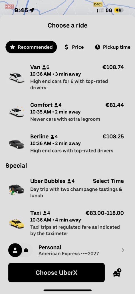 We decided to take an Uber to the city. I don’t understand why Greg didn’t order the Bubbles.