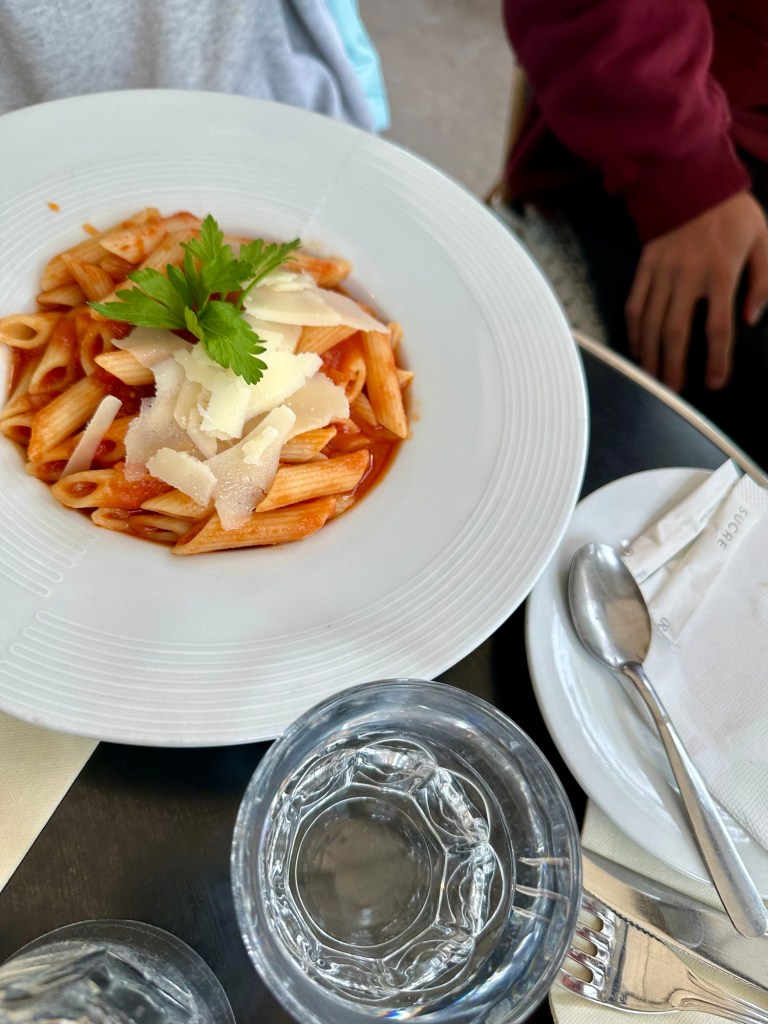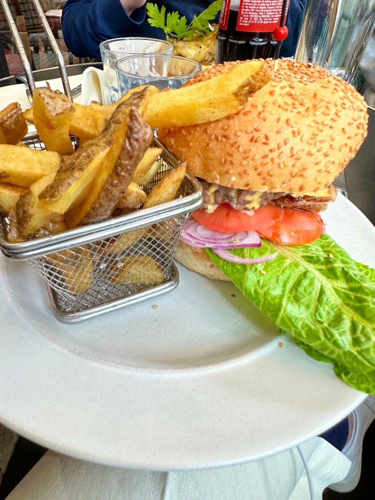 We found an outdoor café and was seated around 11:45. Lunch doesn’t start until noon but we are fine to sit and wait.