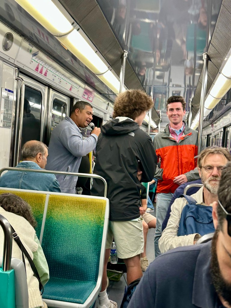 We decided to take the subway back toward the Arc de Triomphé to eat around there and then walk to the Eiffel Tower. The boys were serenaded.