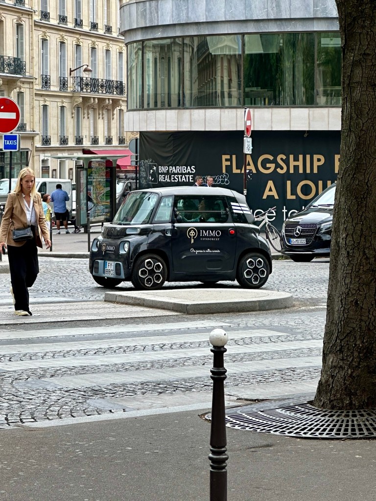 This car is a Citroen Ami that is electric with a top speed of 20 something and a range of 46 miles. All the boys want to import one because they think they are hilarious. Not exactly sure what you actually do with one but obviously I like the name.