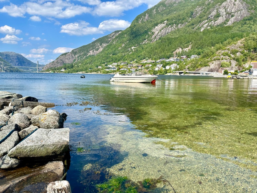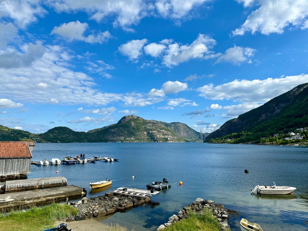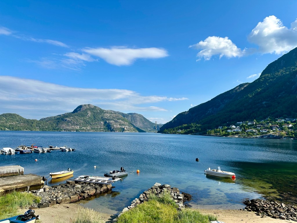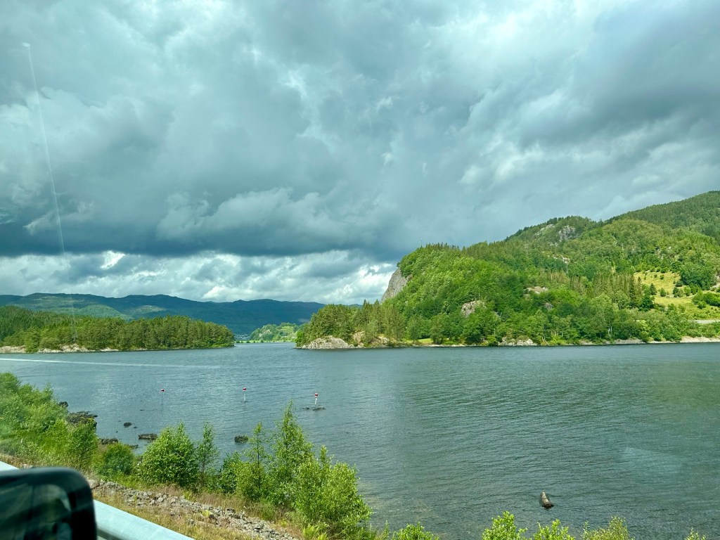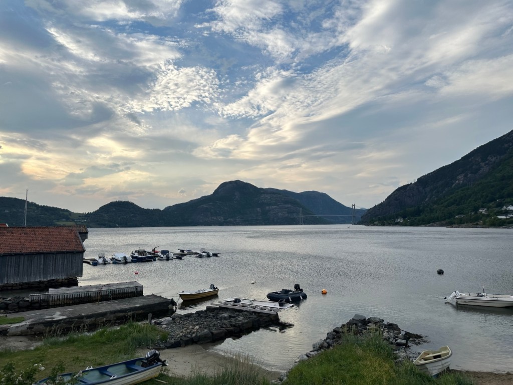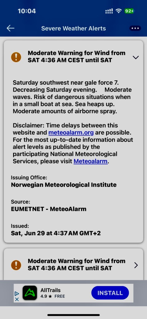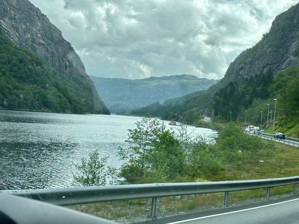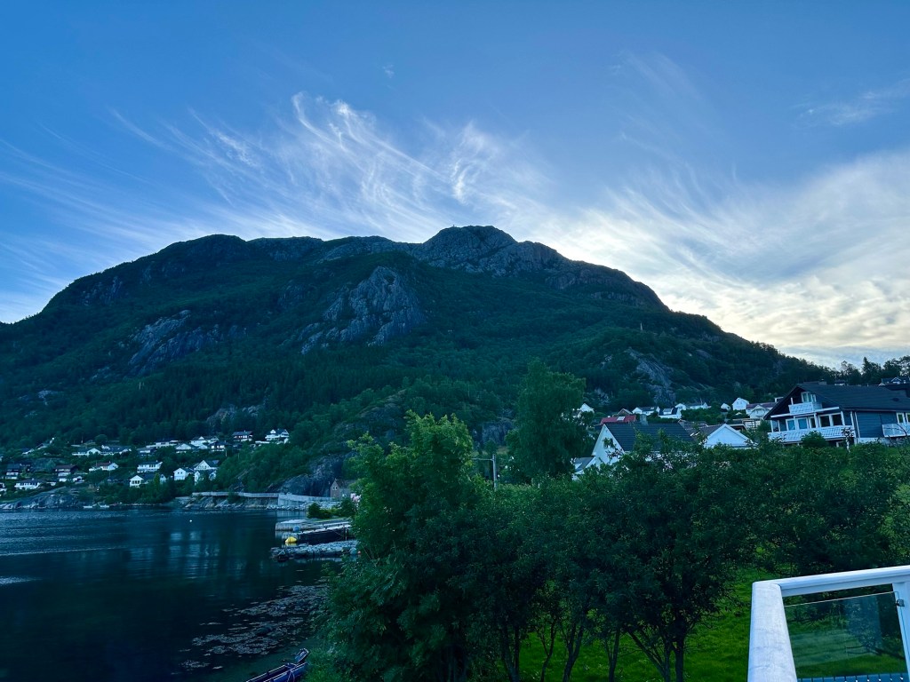 The weather here in Norway changes frequently. A few days ago rain was predicted the entire time we were here. Then the forecast was updated late last week to zero rain. As of this morning it still said zero percent chance of rain as it was drizzling. Our main issue is the wind. It’s nothing like what we had on Preikestolen but boating could be interesting based on the weather app.