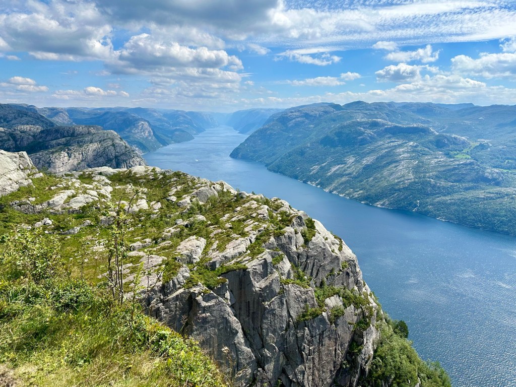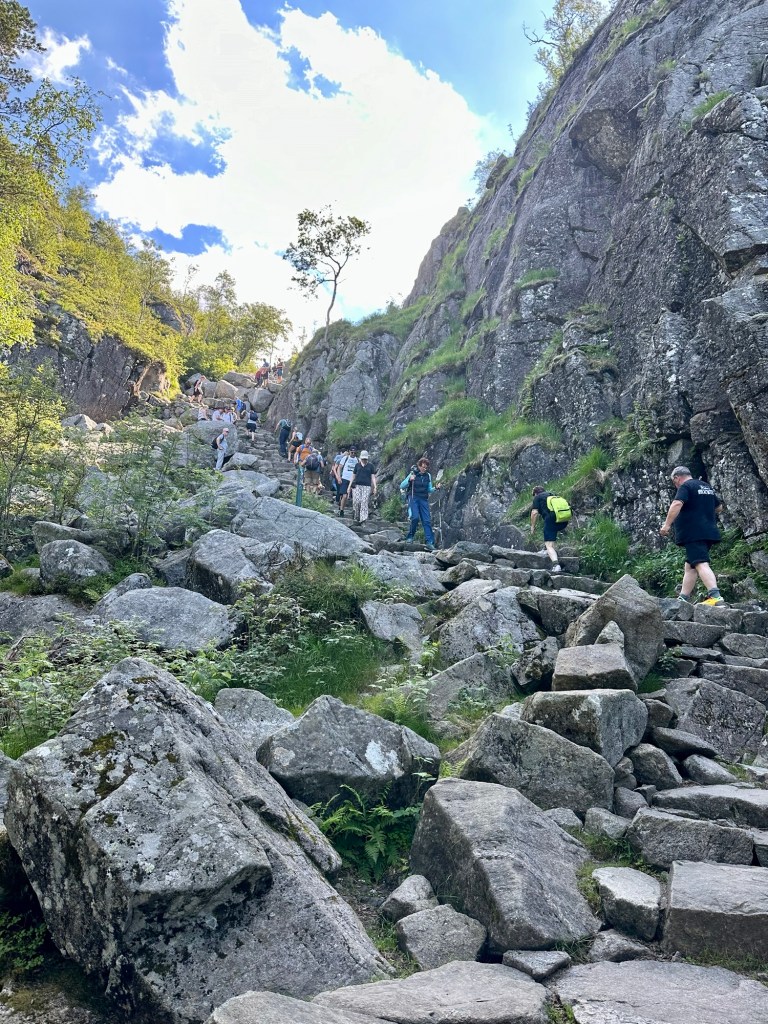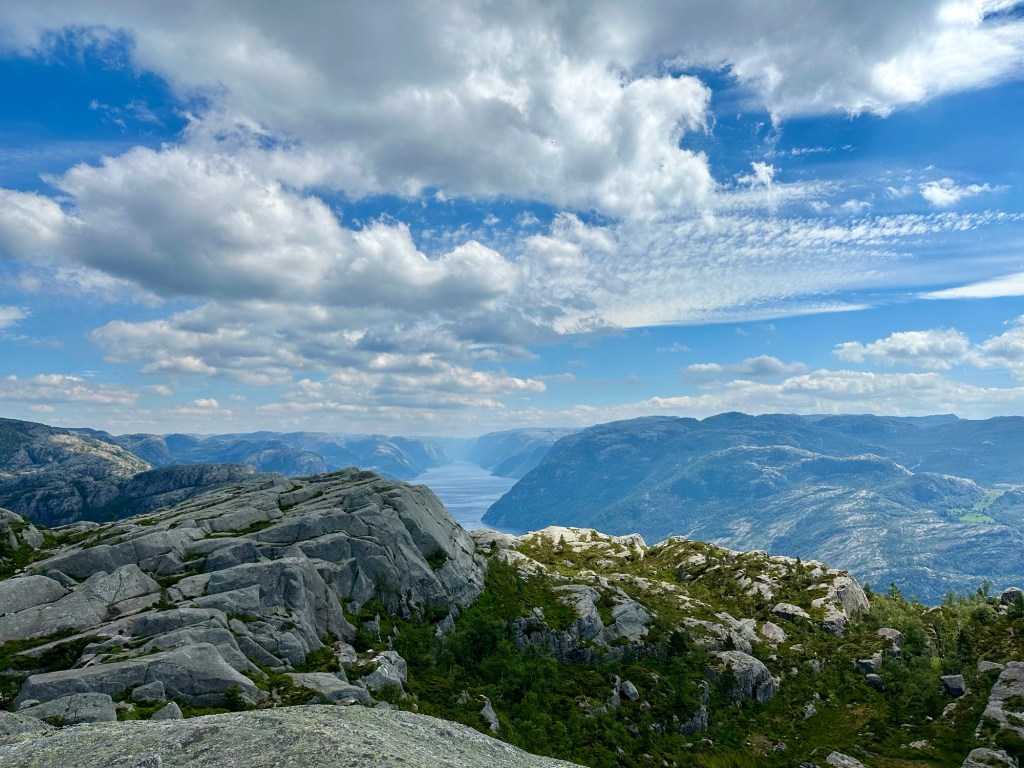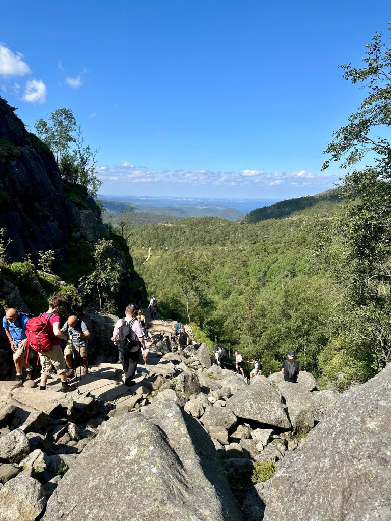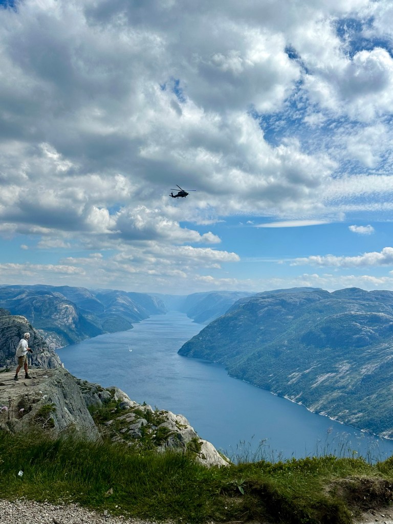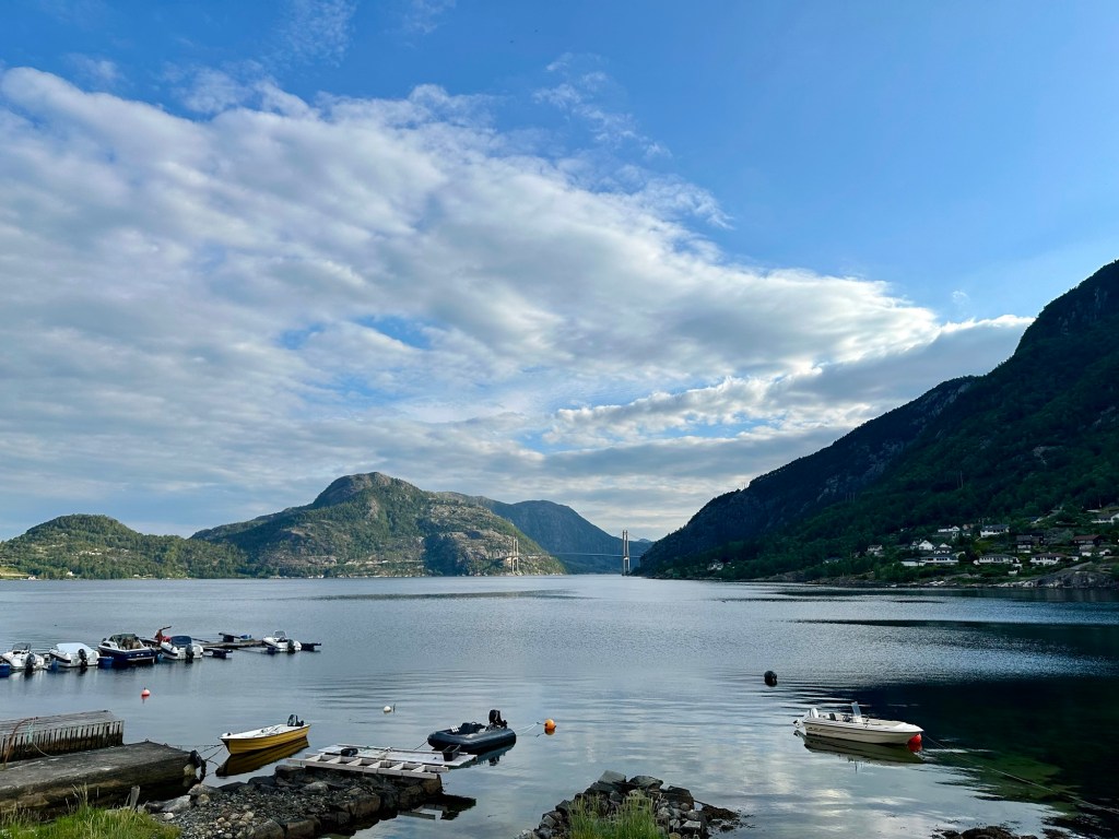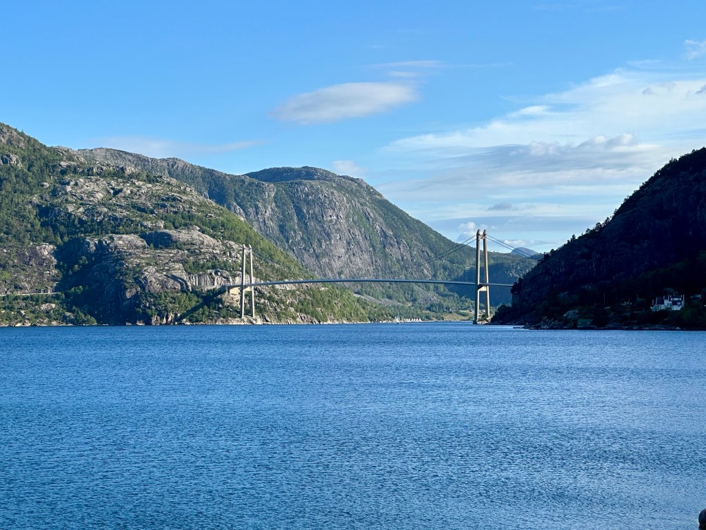 The weather here in Norway changes frequently. A few days ago rain was predicted the entire time we were here. Then the forecast was updated late last week to zero rain. As of this morning it still said zero percent chance of rain as it was drizzling. Our main issue is the wind. It’s nothing like what we had on Preikestolen but boating could be interesting based on the weather app.