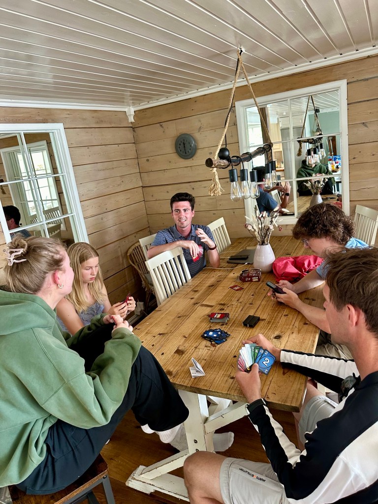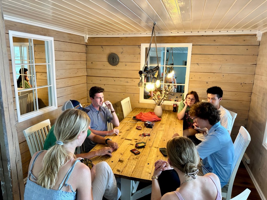 Tomorrow we will have an even slower start to our day. The Bayne Family will go to Church around 11 (maybe with Brooks joining) and we will meet around 1pm. The plan tomorrow is to go to where Pia’s boat is docked (also where Karen’s family lives) for stand up paddle boarding (not sure any Baker will be doing that even with a wetsuit), kayaking, ultimate frisbee (Jason wants revenge!). We may take the boats to an island weather permitting and then dinner here. Uno No Mercy Showdown tomorrow night!