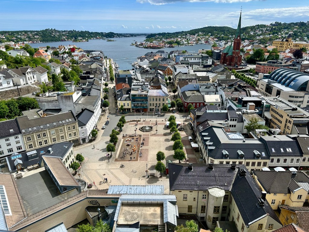 We walked the very short walk to the glass elevator which surprisingly was free for anyone to use. I’d expect anything like that to have a charge. The city decided to built it a few years ago as a tourist attraction because Arendal hosts several events a year. There is a viewing platform that we somehow had all to ourselves.