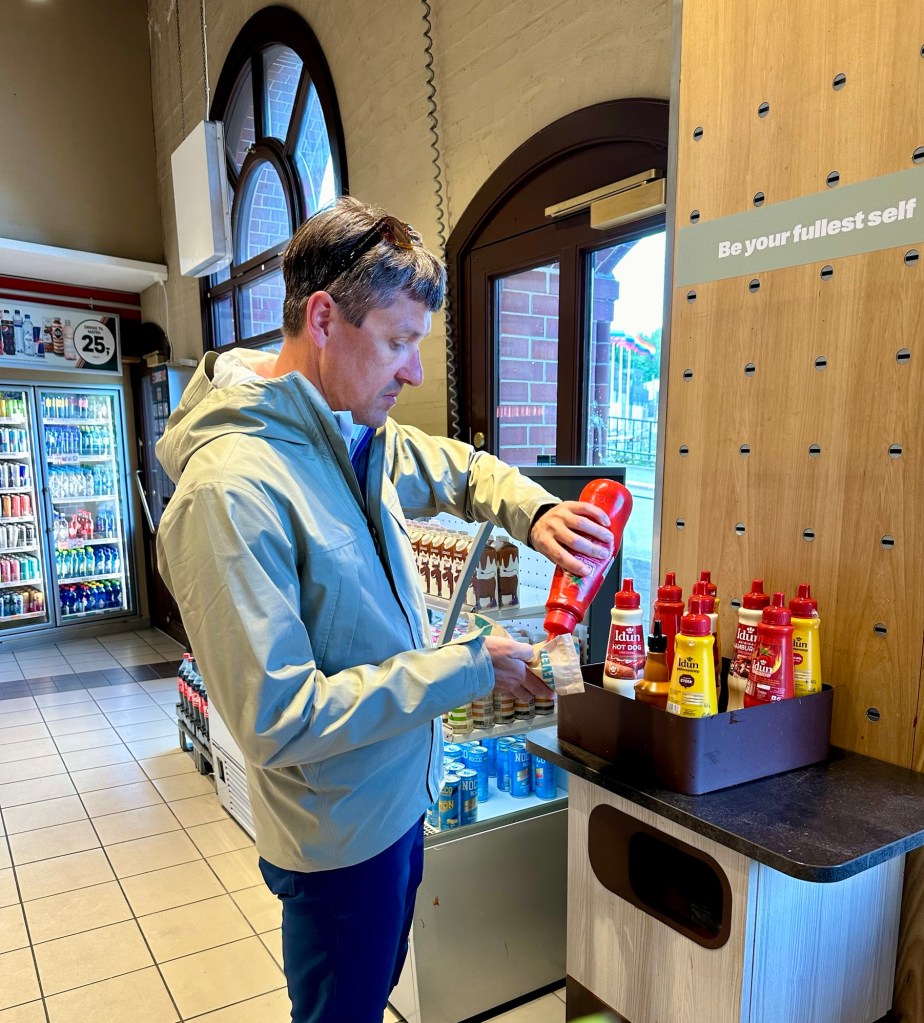 The kids were thirsty at this point. Logan is still struggling with allergies and wanted a Gatorade or water or something. Maddie and Lisa wanted to go to the Espresso House for a caffeine option so we split up into two group. I went with the boys to head for the 7 Eleven in a Church. Because why would you not?