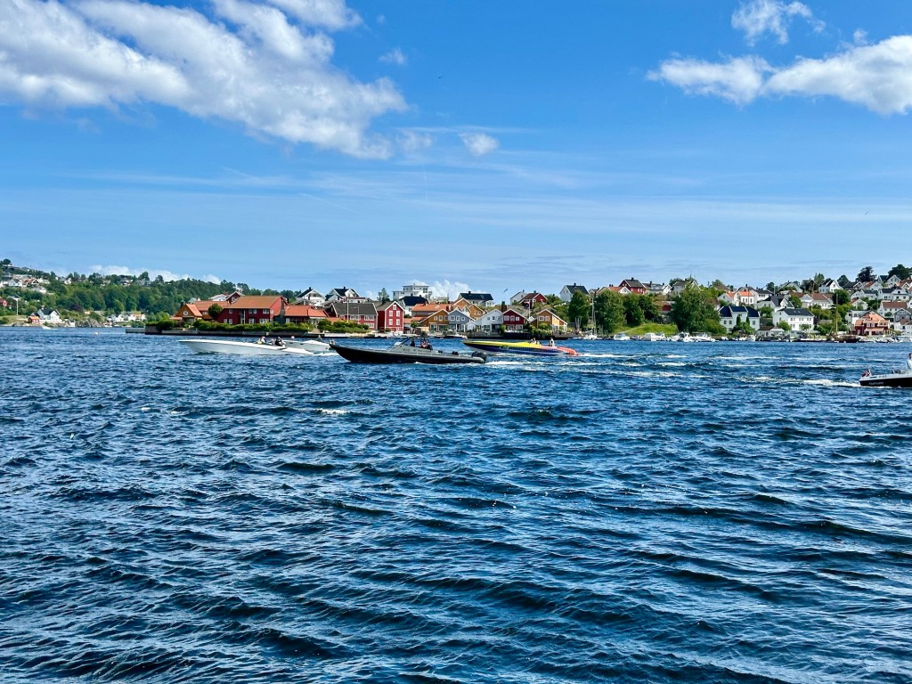 As we arrived in Arendal (the setting for Frozen) we were met with a jet ski who said that we couldn’t park in the normal spots because of a poker boat run. We had to go to some tie ups a little bit farther away.